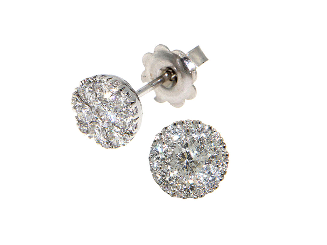 0,30 ct Central diamond and 0,65 ct outline diamond earrings in 18 kt white gold